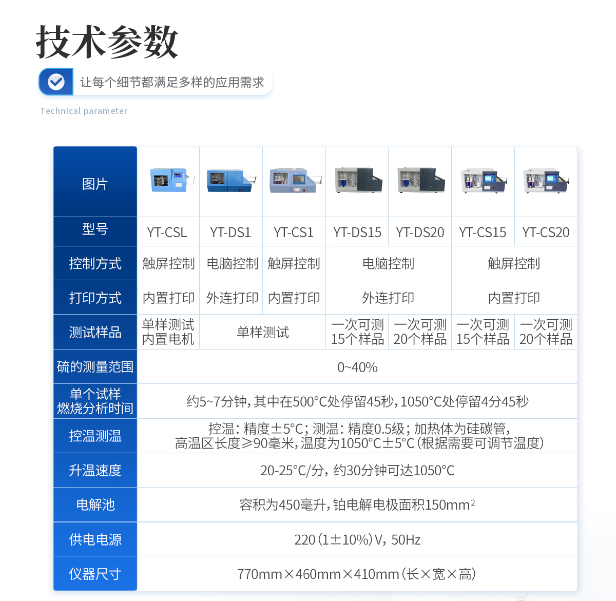 | 1.硫的測量范圍:0—40%. | 2、 單個(gè)試樣燃燒分析時(shí)間:約5--7分鐘,其中在500℃處停留45秒,1050℃處停留4分45秒。 | 3、控溫:精度±5℃。測溫:精度0.5級;加熱體為硅碳管,高溫區(qū)長度≥90毫米,溫度為1050℃±5℃(根據(jù)需要可調(diào)節(jié)溫度) | 4、 密度:如下表規(guī)定: St,% 重復(fù)性St,ad,% 再現(xiàn)型St,d,%<1 4="" 0.05="" 0.10="" 0.20="">4 0.20 0.30 | 5、升溫速度:20--25℃/分,約30分鐘可達(dá)1050℃。 | 6、電解池:容積為450毫升,鉑電解電極面積150mm2 。 | 7、供電電源:220(1±10%)V,50Hz. | 8、儀器尺寸(mm) 長×寬×高(770×460×410) |