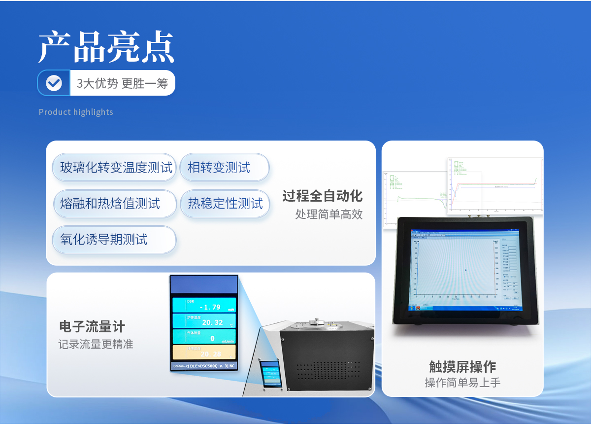 該差示掃描量熱儀為觸摸屏式,主要針對塑料行業(yè)訂制,可測各種塑料的熔融、塊狀、 顆粒、薄膜、管道、套管等熔點的測試。