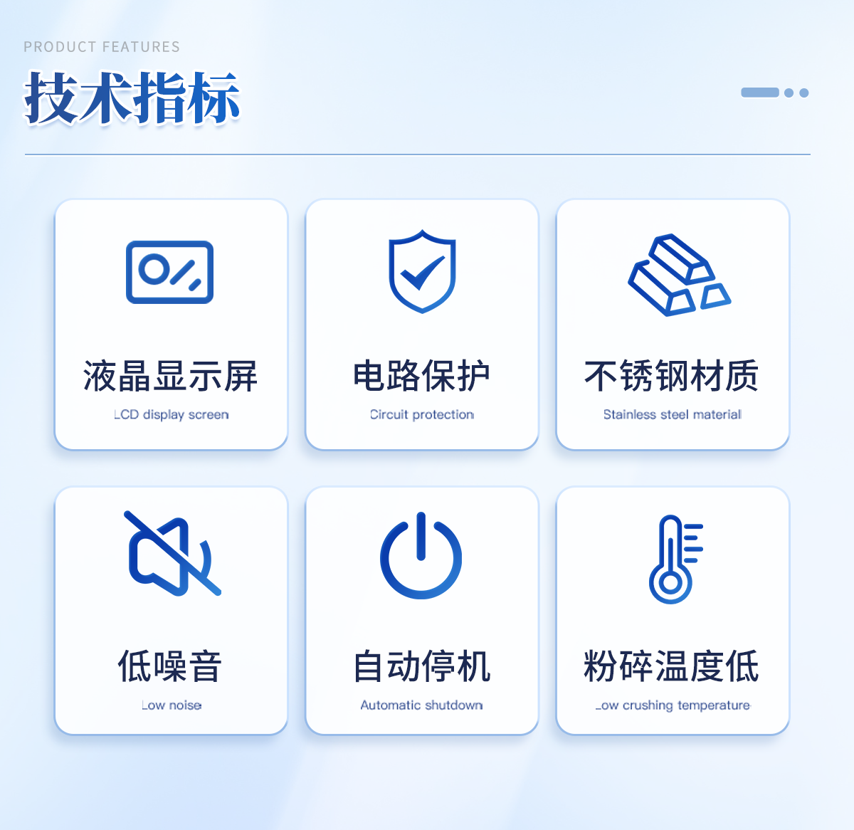★21、具有溫控功能,可設(shè)定溫度自動停機,調(diào)節(jié)轉(zhuǎn)速,進料速度,粉碎時間