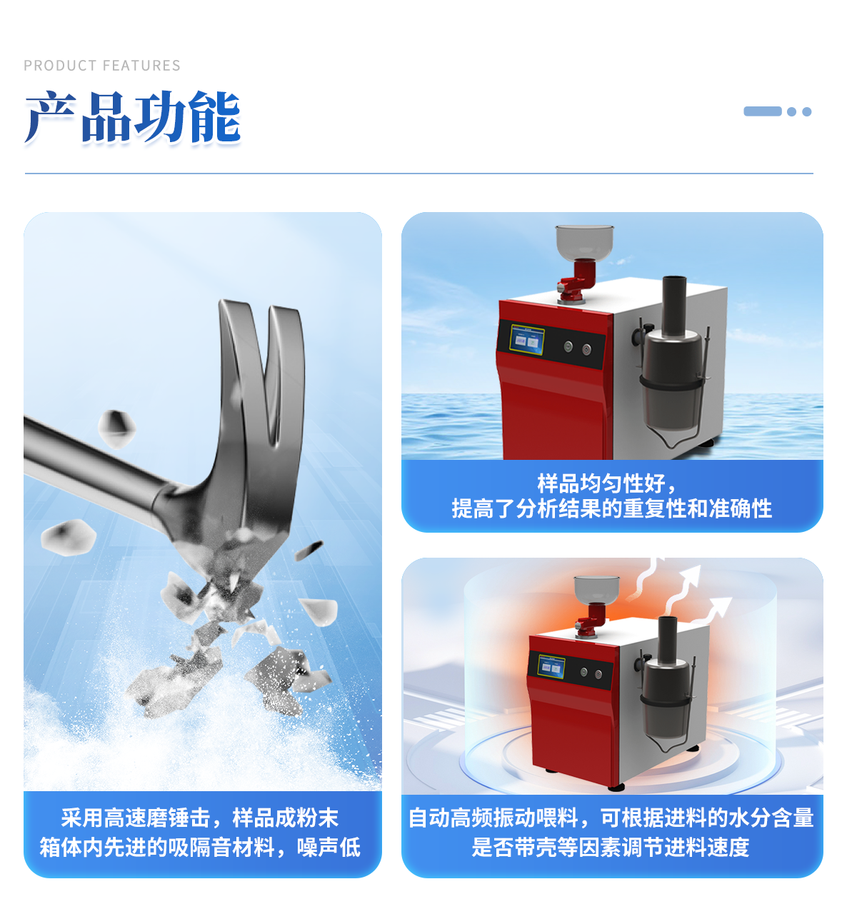 ·樣品粉碎時具有高速氣流自動清理磨膛功能,不需要在樣品粉碎時停止進行人工清理