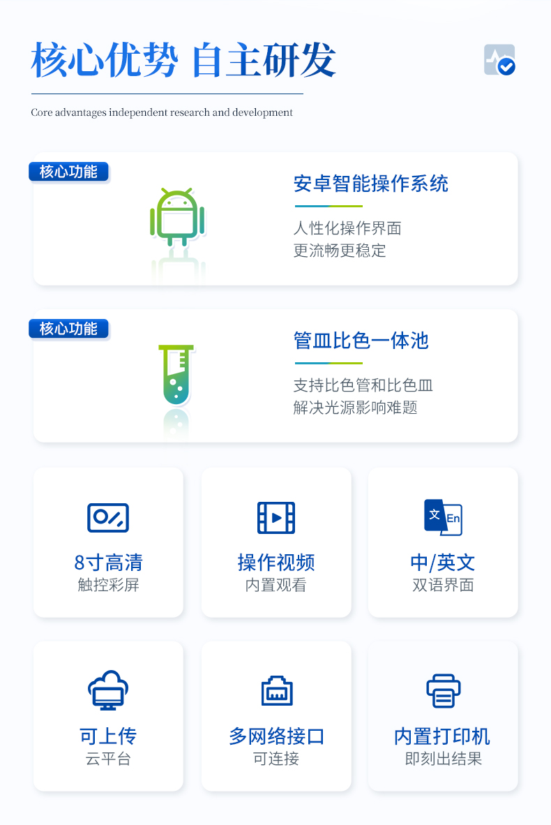 3、采用精密比色池設(shè)計(jì),使用光源一致,可以解決由于光源誤差帶來的檢測結(jié)果誤差問題,檢測結(jié)果更加精準(zhǔn)。