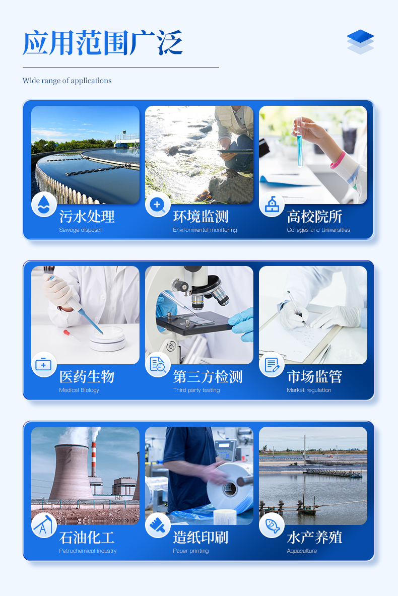 能夠廣泛的應(yīng)用于各種行業(yè)(工業(yè)廢水、城市污水、生活污水及江湖流域地表水)廢水的檢測,可適合不同用戶的多種需求,可在化工、石油、焦化、造紙、冶金、釀造、醫(yī)藥等工業(yè)廢水及各種生活污水監(jiān)測應(yīng)用。