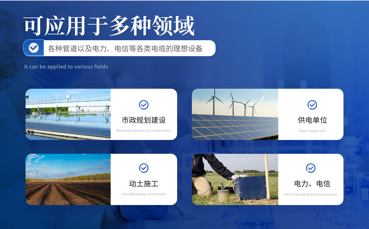 云唐YT-DGDA型全頻管線探測儀是專業(yè)管線探測、管線管理與維護、市政規(guī)劃建設、供電單位、動土施工等設計地下管線的單位探測輸油(氣)管道、給水、排水、燃氣、熱力、工業(yè)等各種管道以及電力、電信等各類電纜的理想設備,是管線儀更新?lián)Q代的**選擇。
