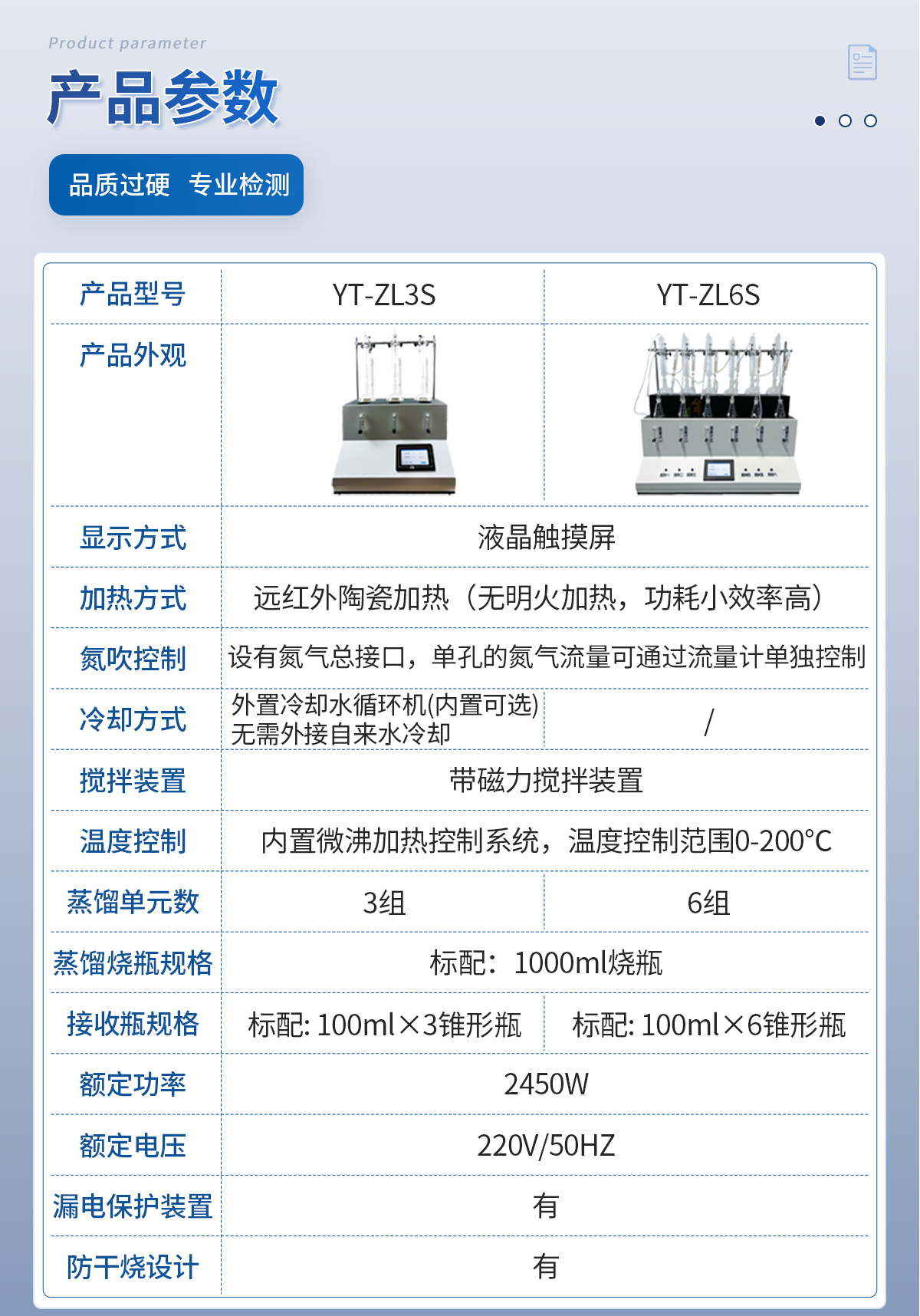 主要原理是根據(jù)藥典中所提供的檢測方法,將中藥材以蒸餾法進行處理,樣品中的亞硫酸鹽系列物質(zhì)加酸處理后轉(zhuǎn)化為二氧化硫后,隨氮氣流帶入到含有雙氧水的吸收瓶中,雙氧水將其氧化為硫酸根離子,采用酸堿滴定法測定,計算藥材及飲片中的二氧化硫殘留量。本產(chǎn)品在嚴格遵循藥典要求的基礎上,整合加熱,蒸餾,水循環(huán)及氮吹等功能為一體,可同時提供3-5個樣品(空白樣,平行樣)的處理,從而極大的提高了檢測數(shù)據(jù)的精度和減少了工作時間。