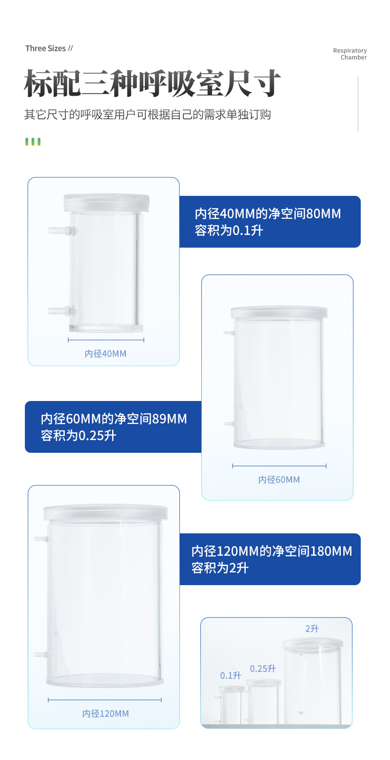 標(biāo)配三種呼吸室尺寸: