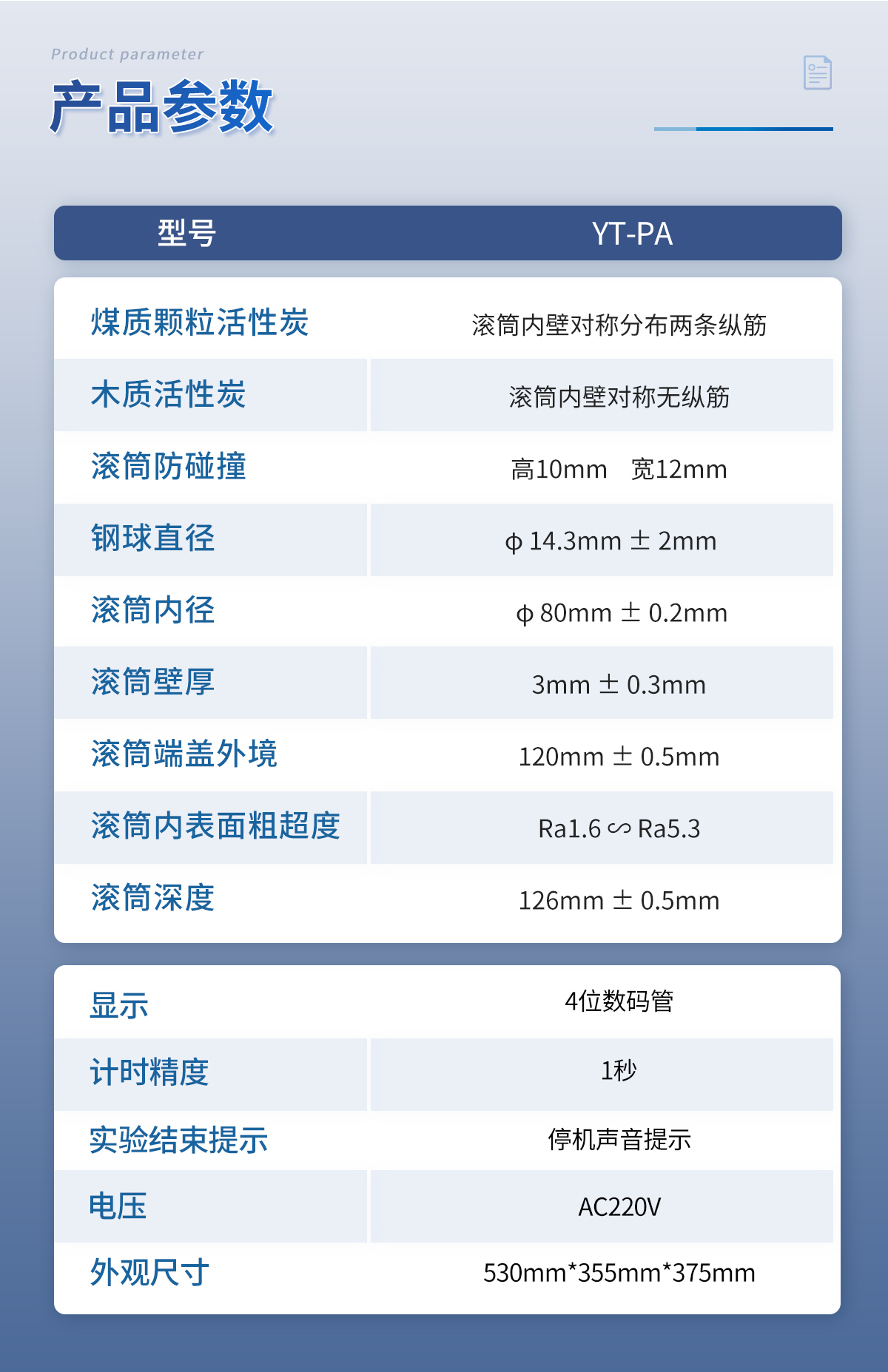 產(chǎn)品介紹: 活性炭強度測定儀 YT-HTQ 簡介 活性炭強度測定儀是按照GB/T7702.3-2008《煤質(zhì)顆?;钚蕴吭囼灧椒?強度的測定》和GBT12496.6《木質(zhì)性炭試驗方法 強度的測定》開發(fā)設計,適用于煤質(zhì)顆?;钚蕴繌姸取ぁぁ?026-03-05