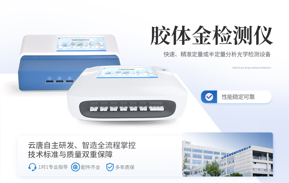 | 1、食品安全: 致病微生物、農(nóng)獸藥殘留、生物毒素等快速篩查。 | 2、畜牧獸醫(yī): 動物疫病診斷、動物源性安全指標檢測。 | 3、環(huán)境監(jiān)測: 水質(zhì)、土壤特定污染物篩查。 | 4、科研與生物安全: 免疫層析實驗定量分析、生物因子檢測。 | 5、其他領(lǐng)域: 所有使用膠體金免疫層析試紙條的場景。 |