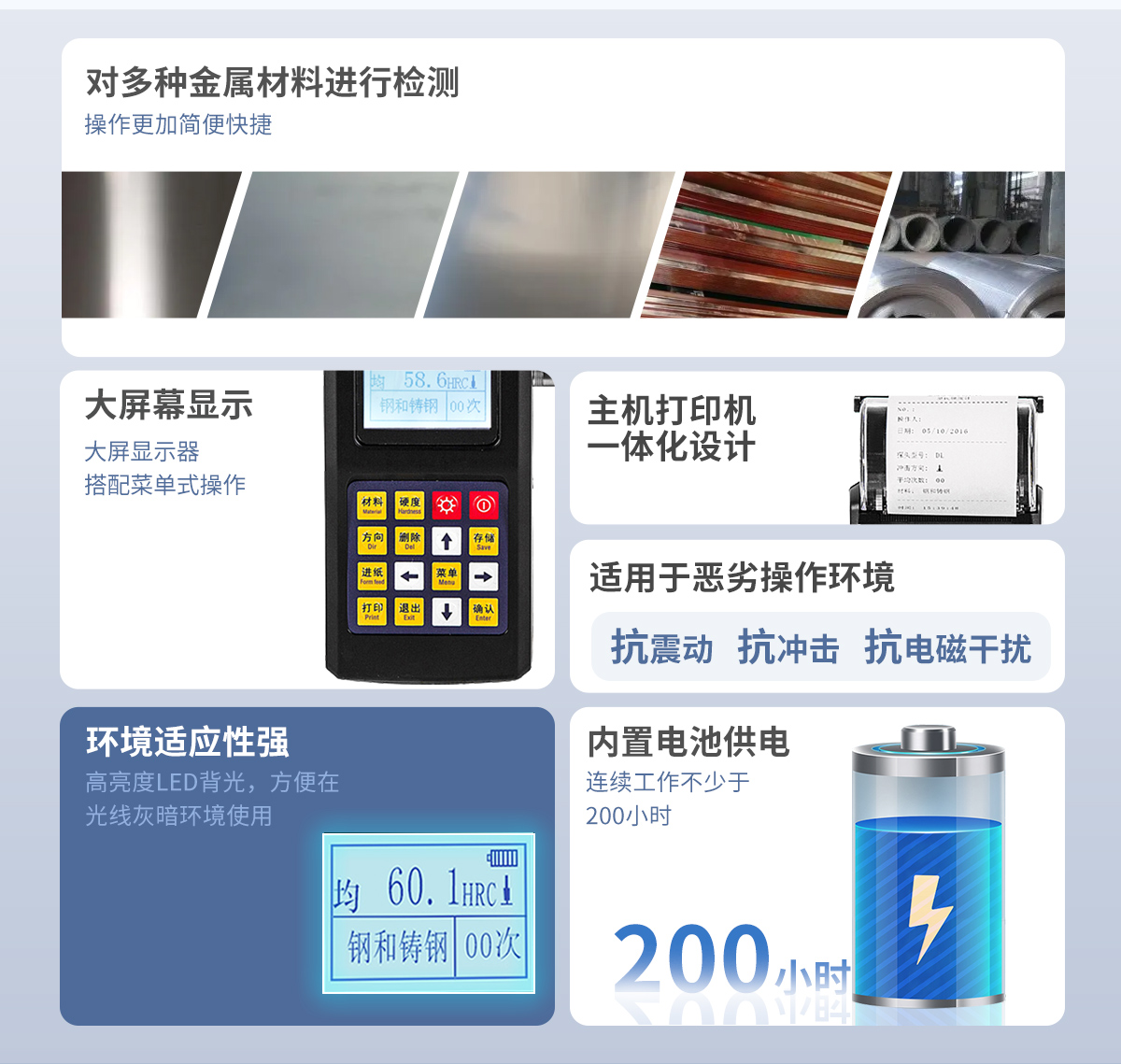 ● 依據(jù)里氏硬度測量原理,可以對多種金屬材料進行檢測,測值準確穩(wěn)定;