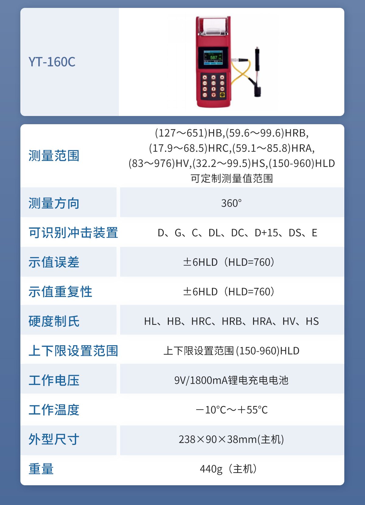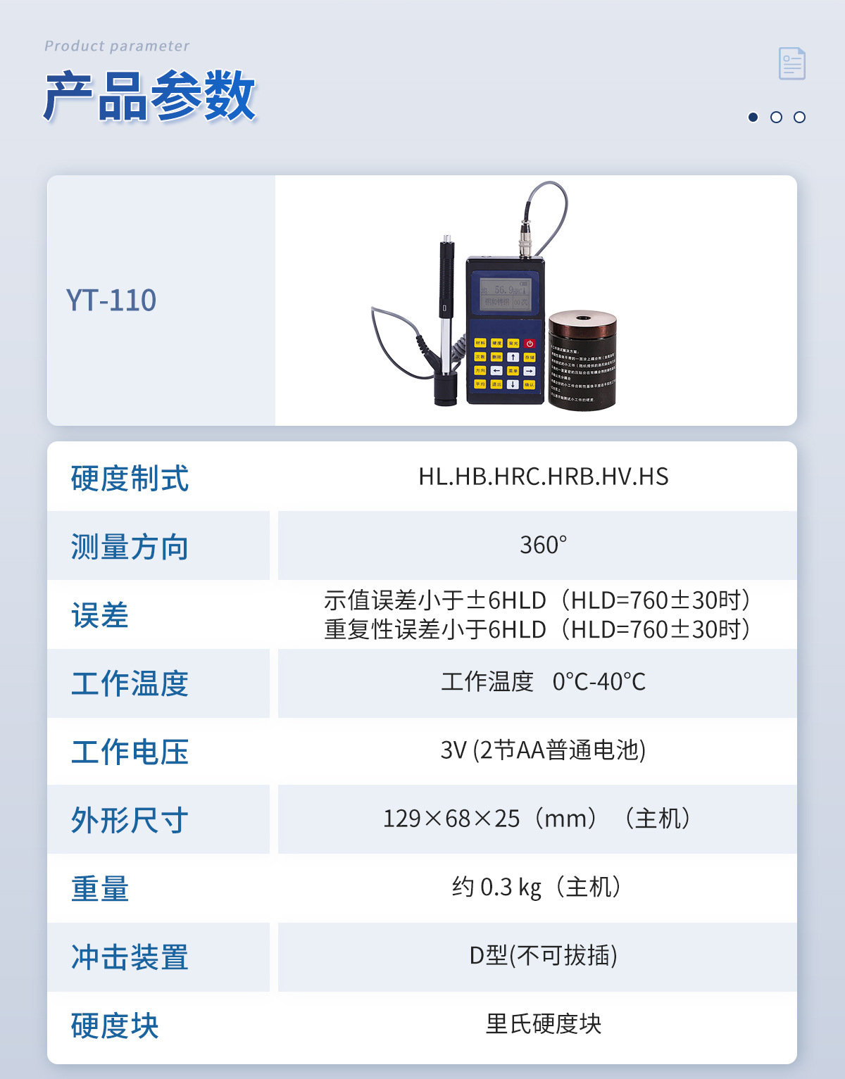 布洛維里氏硬度計 YT-110 技術參數(shù)