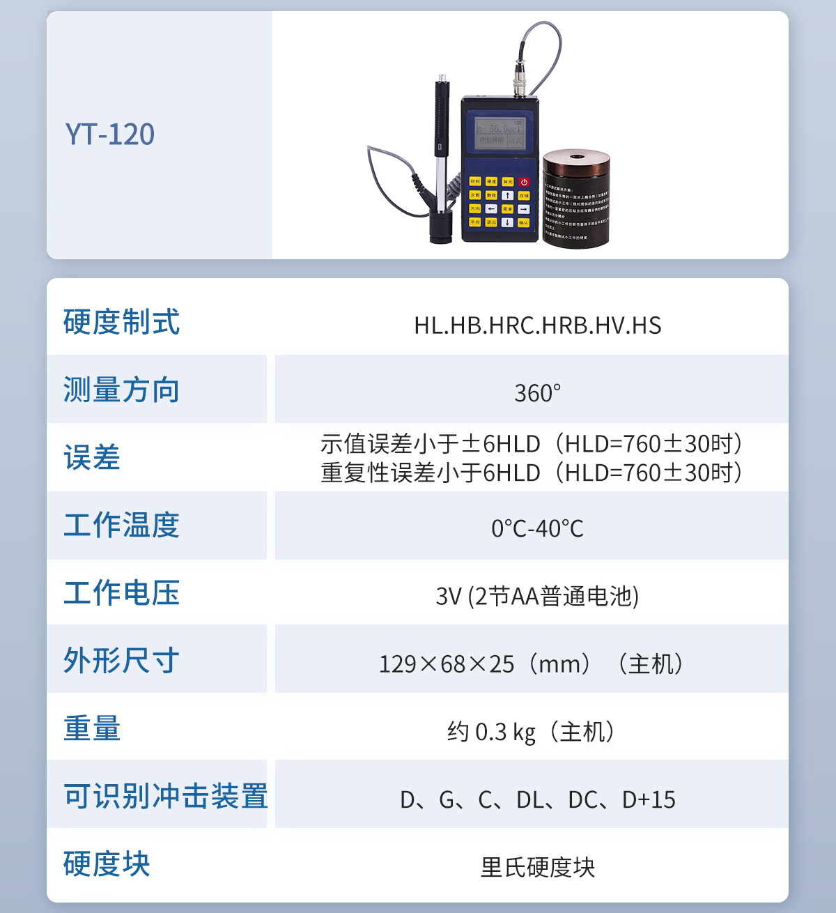 產(chǎn)品介紹: 布洛維里氏硬度計 YT-110 概述YT-110里氏硬度計是我公司生產(chǎn)的多功能的硬度測量儀器。使用全中文顯示,菜單式操作,操作簡單、方便。本機可直接;顯示里氏、布氏、洛氏、維氏、肖氏等各種硬度值···2026-03-05