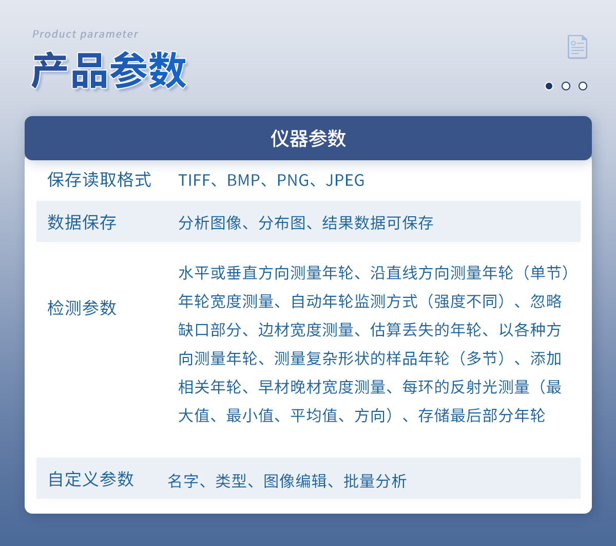 產(chǎn)品介紹: 產(chǎn)品簡(jiǎn)介:年輪圖像分析系統(tǒng)是一款多平臺(tái)圖象分析系統(tǒng),與掃描儀匹配,專(zhuān)門(mén)對(duì)盤(pán)狀的木材截面或柱狀的生長(zhǎng)錐樣本進(jìn)行樹(shù)木年輪的測(cè)量。大型木材樣本可在不同部位多次分別成像;特殊的樹(shù)芯定位器用···2026-03-05
