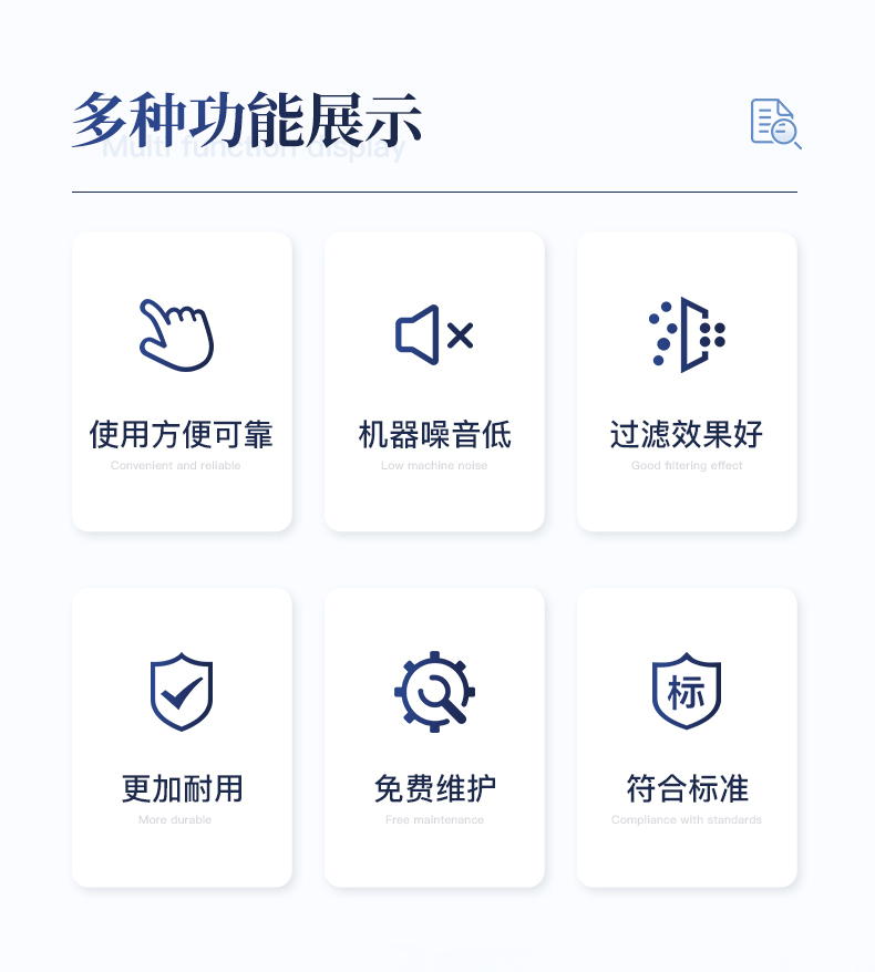| 1.使用方便、可靠。 | 2.過(guò)濾后奶液可繼續(xù)用于生產(chǎn),降低成本。 | 3.噪音低,過(guò)濾效果好。 | 4.免維護(hù)設(shè)計(jì),避免皮帶維護(hù)麻煩。 | 5.耗材成本低。 | 6.改進(jìn)電機(jī),更耐用。 | 7.配套齊全,使用便捷。 |