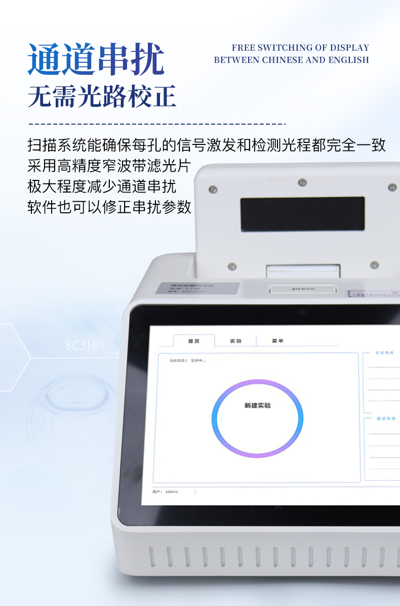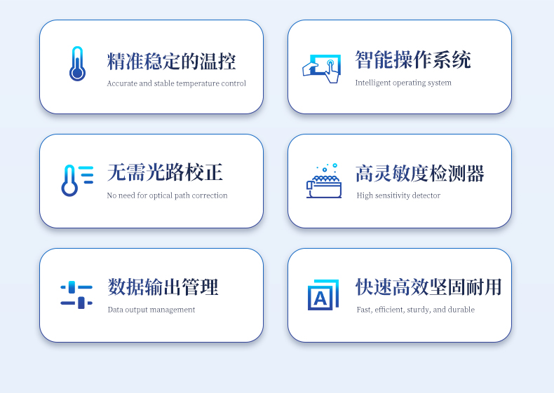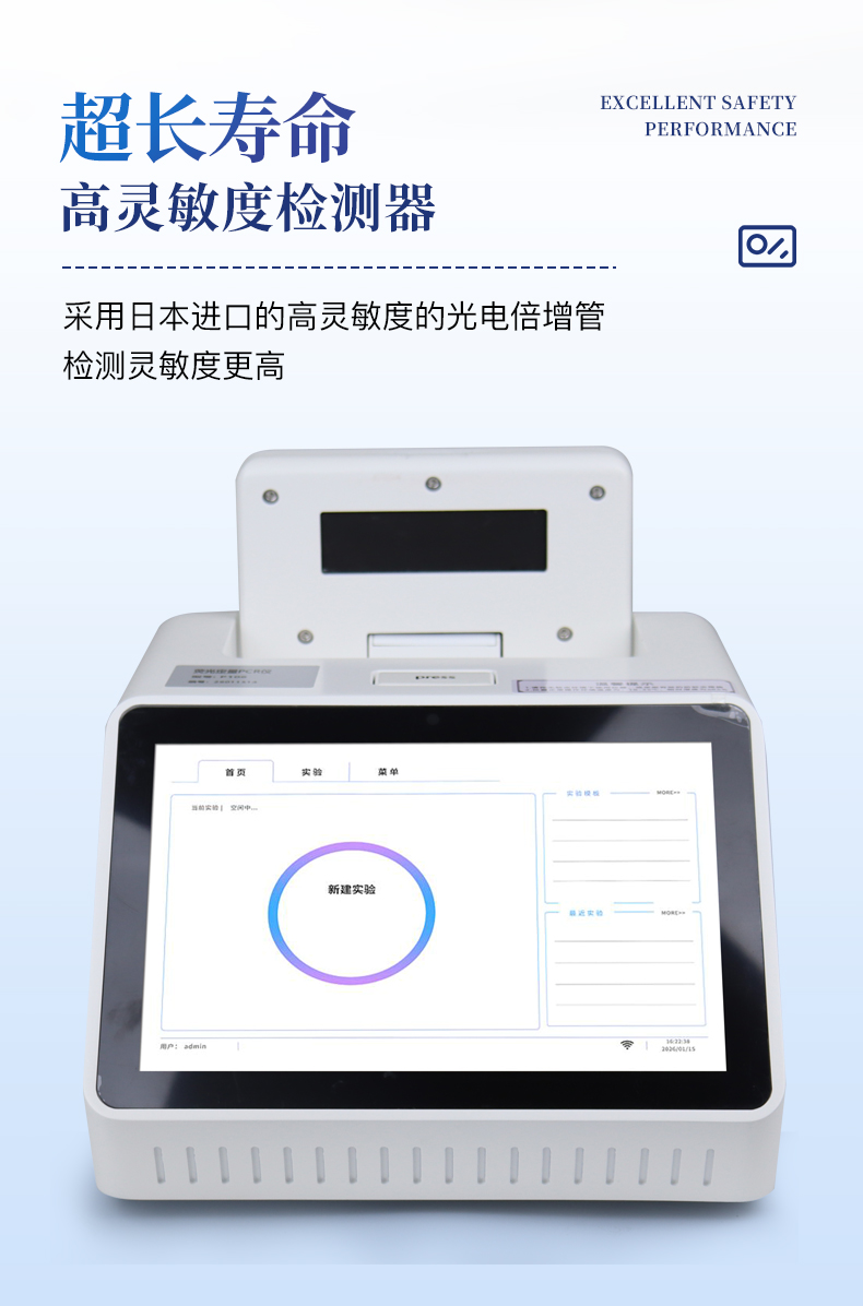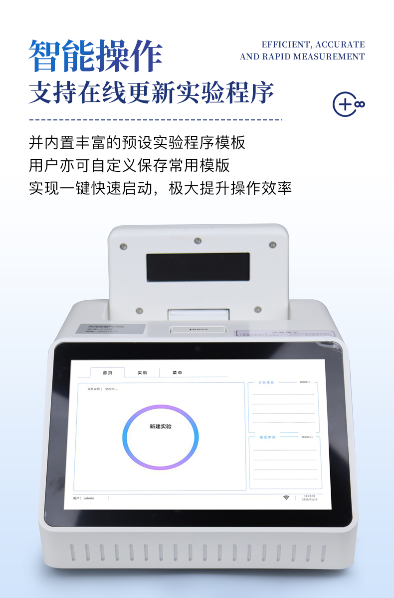 | 1.智能操作系統(tǒng),實(shí)驗(yàn)盡在掌握 | A雙模式靈活控制:支持通過儀器觸摸屏獨(dú)立運(yùn)行,也支持通過電腦軟件進(jìn)行遠(yuǎn)程控制與數(shù)據(jù)管理,適應(yīng)不同實(shí)驗(yàn)場景需求。 | B程序更新與預(yù)設(shè):支持在線更新實(shí)驗(yàn)程序,并內(nèi)置豐富的預(yù)設(shè)實(shí)驗(yàn)程序模板,用戶亦可自定義保存常用模版,實(shí)現(xiàn)一鍵快速啟動,極大提升操作效率。 | C極簡啟動體驗(yàn)(可選配):可定制集成攝像頭掃描系統(tǒng),用戶只需掃描樣品板或程序卡的二維碼,即可自動識別并調(diào)用對應(yīng)實(shí)驗(yàn)程序,簡化流程,避免人為設(shè)置錯誤。 | D操作簡單:無論是觸摸屏界面還是電腦軟件,均設(shè)計(jì)得直觀易懂,新用戶也能快速上手。預(yù)置常用程序模板,進(jìn)一步簡化操作流程。 | 2.精準(zhǔn)穩(wěn)定的溫控與光學(xué)核心 | A長久精準(zhǔn)的溫控系統(tǒng):采用進(jìn)口***TEC半導(dǎo)體制冷模塊,控溫精準(zhǔn)(±0.1°C),孔間溫度均勻性**(≤±0.3°C)。系統(tǒng)穩(wěn)定性卓越,長期使用性能衰減小,校準(zhǔn)周期長達(dá)數(shù)年,顯著降低維護(hù)成本與運(yùn)營中斷。 | B免維護(hù)的靈敏光學(xué)系統(tǒng):配備4個獨(dú)立LED光源與4個獨(dú)立光電二極管檢測器,實(shí)現(xiàn)四通道熒光同步精準(zhǔn)檢測。采用超長壽命進(jìn)口光源,設(shè)計(jì)壽命期內(nèi)免維護(hù),無需額外校準(zhǔn)或更換,保障檢測結(jié)果長期一致性與高靈敏度。 | C卓越的數(shù)據(jù)質(zhì)量:實(shí)驗(yàn)線性相關(guān)性高(R2≥0.999),重復(fù)性優(yōu)異(孔間CV值低),確保定量結(jié)果準(zhǔn)確可靠,數(shù)據(jù)置信度高。 | 3.**便捷的數(shù)據(jù)與輸出管理 | A多重?cái)?shù)據(jù)導(dǎo)出方式:支持通過USB存儲設(shè)備直接拷貝,或經(jīng)由Wi-Fi無線網(wǎng)絡(luò)傳輸數(shù)據(jù)至本地服務(wù)器或云端,方便靈活,滿足各類實(shí)驗(yàn)室數(shù)據(jù)管理習(xí)慣。 | B豐富的報告導(dǎo)出與打印:支持生成并導(dǎo)出多種格式(如PDF、Excel)的實(shí)驗(yàn)報告。儀器兼容USB熱敏打印機(jī)、藍(lán)牙無線打印機(jī)及常規(guī)A4打印機(jī),可直接在儀器上或通過電腦一鍵導(dǎo)出并打印專業(yè)報告,便于結(jié)果存檔與即時分享。 | 4.快速**與堅(jiān)固耐用 | A升降溫速度快:優(yōu)化設(shè)計(jì)的溫控系統(tǒng)具備高速升降溫能力,顯著縮短單次循環(huán)與整體檢測時間,提升實(shí)驗(yàn)通量。 | B超長使用壽命:核心部件均選用工業(yè)級耐用材料與設(shè)計(jì),整機(jī)運(yùn)行穩(wěn)定可靠,致力于為用戶提供長久的投資回報。 | 三、應(yīng)用場景基礎(chǔ)科學(xué)研究、病原體檢測、肉制品摻假、轉(zhuǎn)基因檢測、食品安全檢測、藥物開發(fā)及合理用藥、基因表達(dá)、水體監(jiān)測、松材線蟲檢測、寵物檢測、養(yǎng)殖業(yè)疫病檢測 |