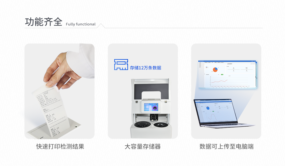 | 人性化界面,操作方便 | 儀器按照試劑要求自動、按時、按量加入試劑,提高工作效率 | 儀器自動對未正常放置的樣本或異常的樣本進行檢查并提示 | 采用**的冷光源,保證了光源的穩(wěn)定性及數(shù)據(jù)的準確性 | 大容量存儲器,能存儲12萬條數(shù)據(jù),滿足客戶需求 | 內(nèi)置微型熱敏打印機,快速打印檢測結(jié)果,方便數(shù)據(jù)留存 | 可通過數(shù)據(jù)線連接電腦,將檢測的數(shù)據(jù)上傳至電腦端 | 儀器可自動清洗管路,避免試劑污染 | 儀器檢測消耗試劑量和常規(guī)儀器一致 | 儀器具有自動加溫溫控系統(tǒng) |