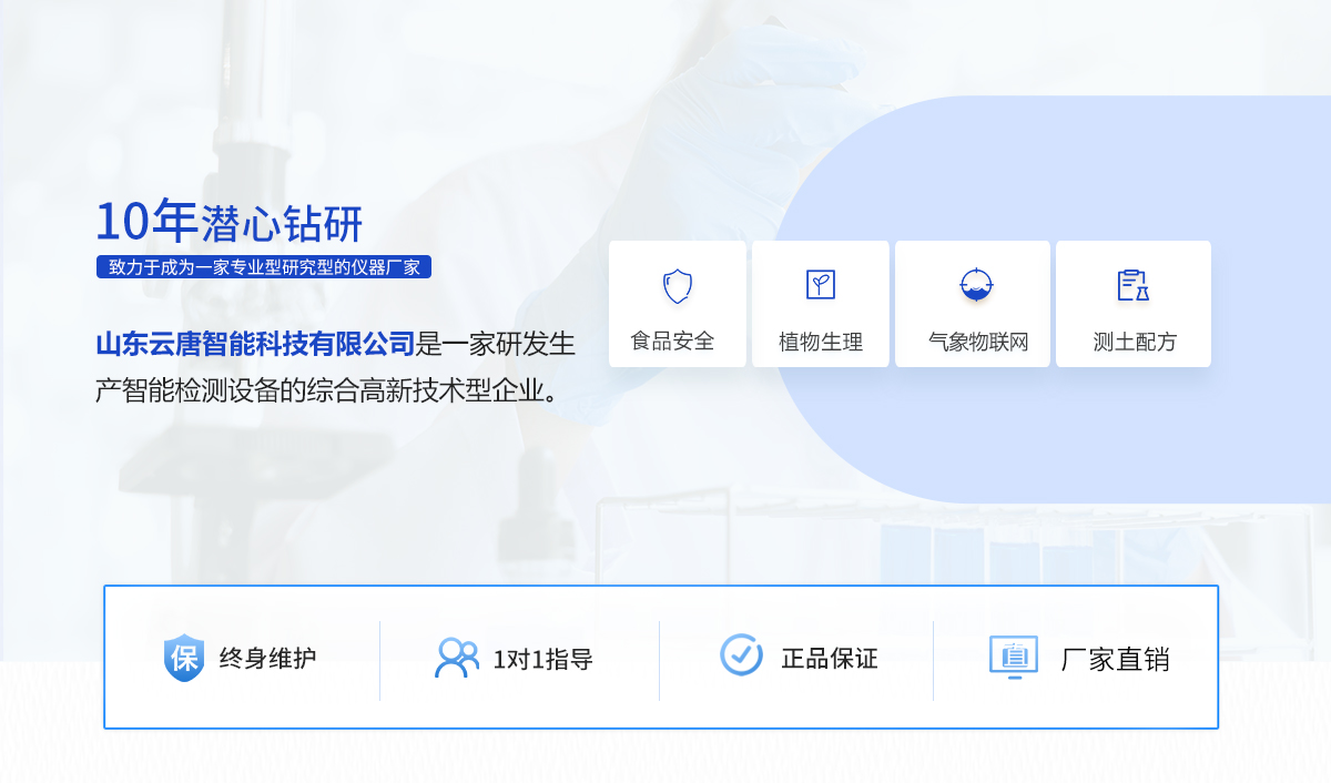 Copyright @ 2019-2022 山東云唐智能科技有限公司 All Rights Reserved. 版權(quán)所有 農(nóng)藥殘留檢測儀 食品檢測儀 細菌檢測儀源頭廠家