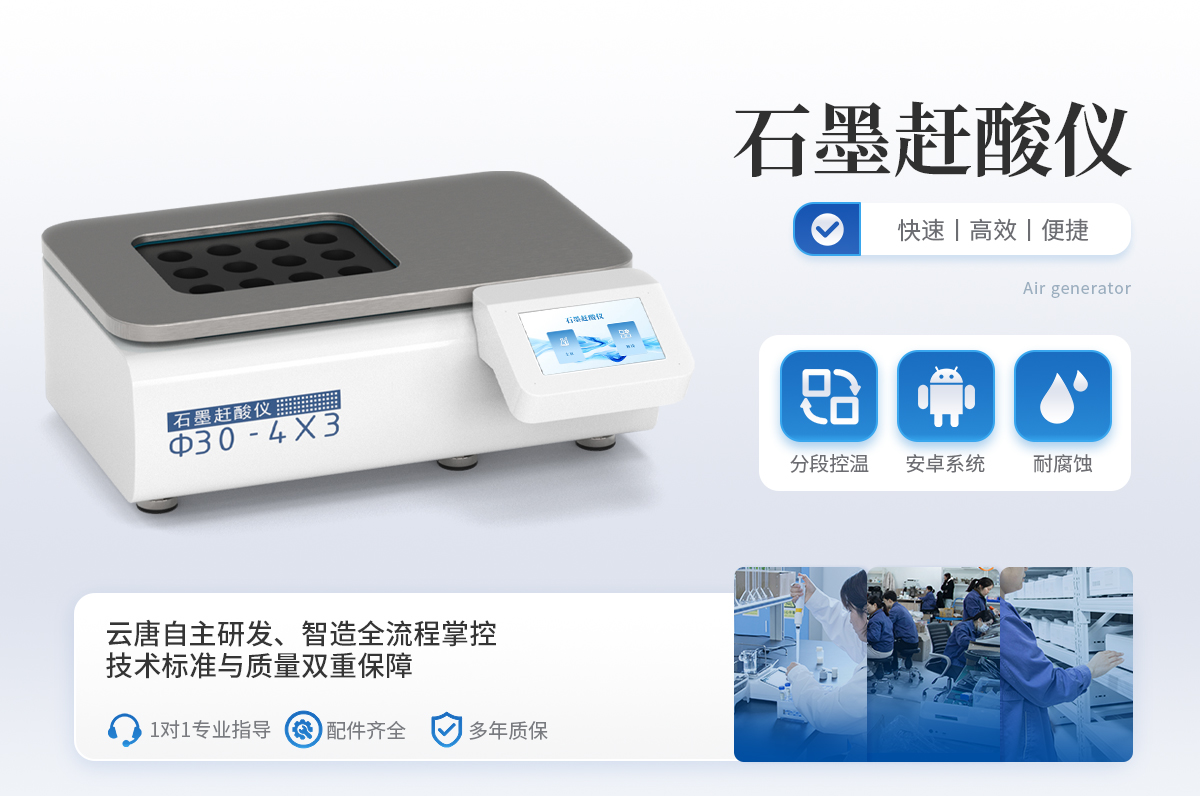 石墨趕酸儀,具有快速、**、便捷等優(yōu)點,適用于食品、藥品、質(zhì)檢、環(huán)保、疾控、化工、高校等行業(yè)樣品的處理??捎糜谖⒉ㄏ獾念A(yù)處理和趕酸處理,是原子吸收、原子熒光、ICP-AES等分析儀器的理想配套產(chǎn)品,更適合與微波消解儀配套使用。