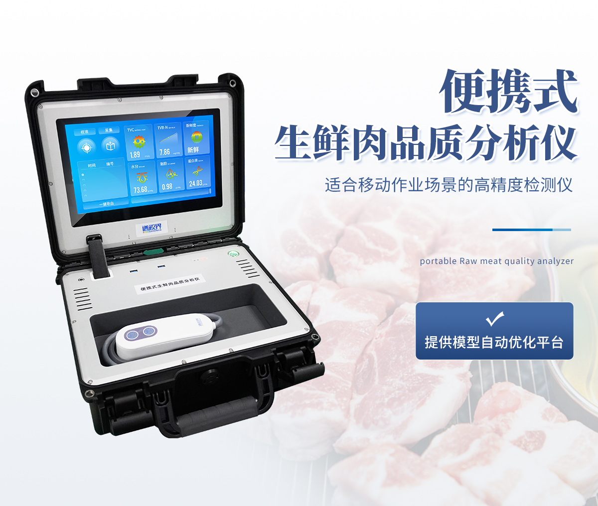生鮮肉品質(zhì)檢測儀,其可用于生鮮肉及肉品生產(chǎn)、加工、儲運企業(yè)、肉品品質(zhì)監(jiān)管部門等。
