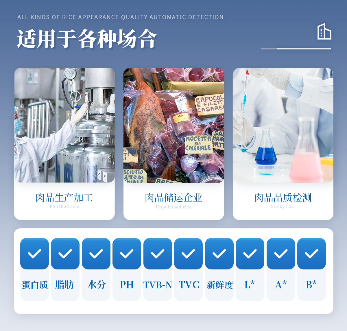 1. ※檢測指標(biāo):蛋白質(zhì)、脂肪、水分、PH、TVB-N、新鮮度、L*、A*、B*
