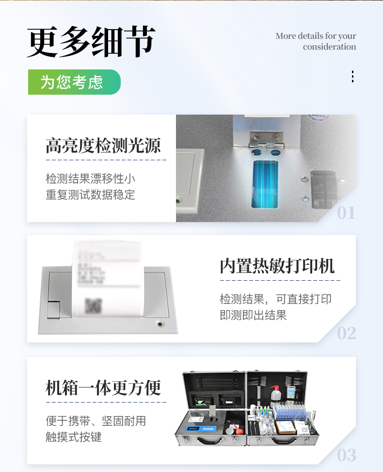 ★全國獨家《機箱/藥劑一體式鋁合金機箱》專利設計,便于攜帶、堅固耐用,配套成品藥劑。