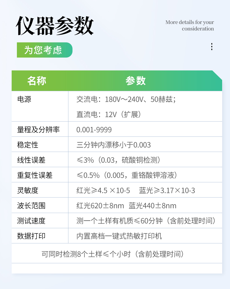 測一個土樣有機質≤60分鐘,同時檢測三個土樣有機質≤80分鐘。