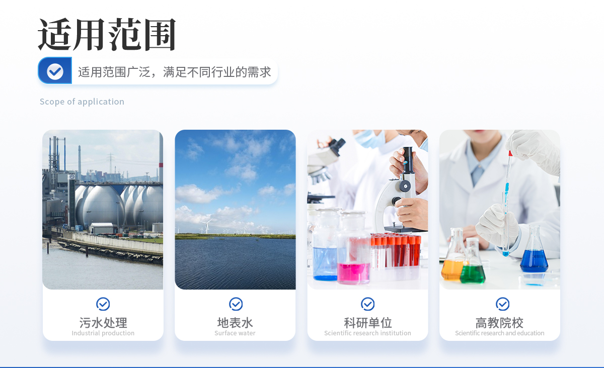 ? 廣泛應(yīng)用于污水處理、地表水、高校、科研單位等領(lǐng)域水質(zhì)懸浮物的現(xiàn)場便攜式監(jiān)測;