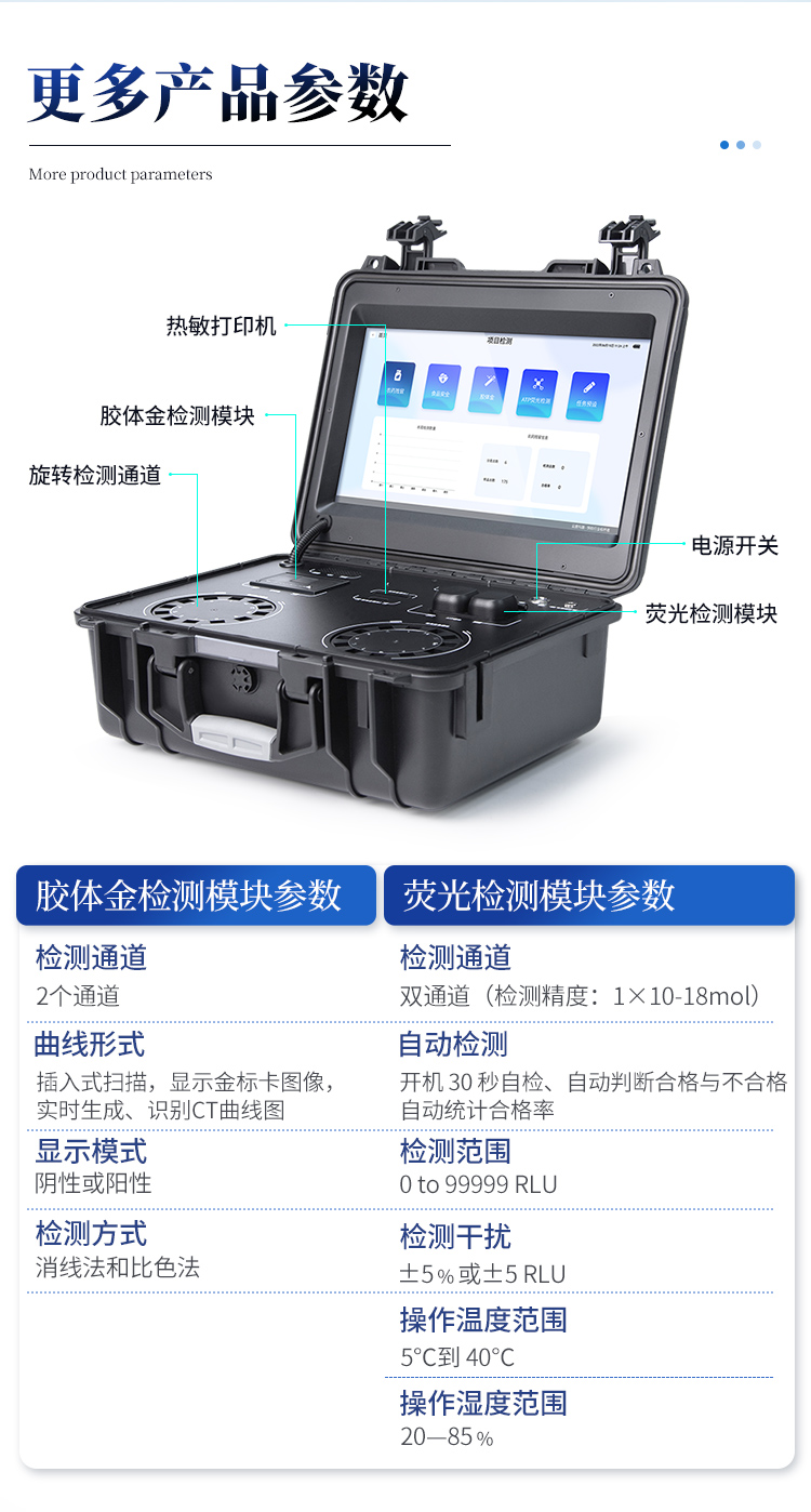 11、膠體金檢測模塊:采用單通道CMOS成像處理技術及膠體金免疫層析技術,可讀取膠體金卡數(shù)據,自動采集、處理分析,將檢測結果顯示,并可根據參考限值自動判斷檢測結果,可檢測常見的獸藥殘留、生物毒素、抗生素、違禁添加物等。