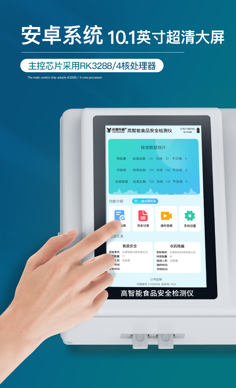 9.6、數據監(jiān)管系統:同步對接監(jiān)管平臺,數據可局域網和互聯網數據上傳,檢測結果可直接傳至食品安全監(jiān)管平臺。進行區(qū)域食品安全監(jiān)管及大數據分析處理與數據統計,監(jiān)測區(qū)域食品安全長短期動態(tài)及問題預估、預警。