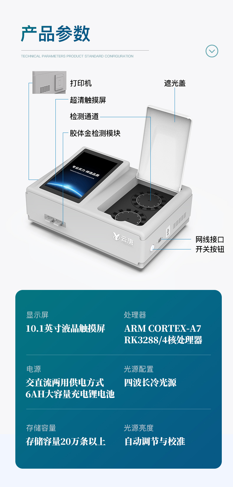 3、顯示屏幕:儀器采用10.1英寸豎向液晶觸摸屏顯,搭配運行安卓智能操作系統,主控芯片采用ARM Cortex-A7,RK3288/4核處理器,主頻1.88Ghz,操作方便,性能更強。
