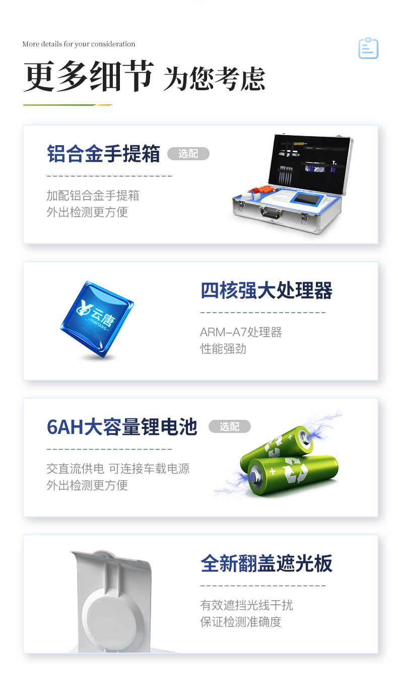 2、儀器檢測模塊標準化、智能化,檢測項目可隨意自由組合。檢測箱體內(nèi)置多個標準檢測單元,檢測模塊可以調(diào)整配置。