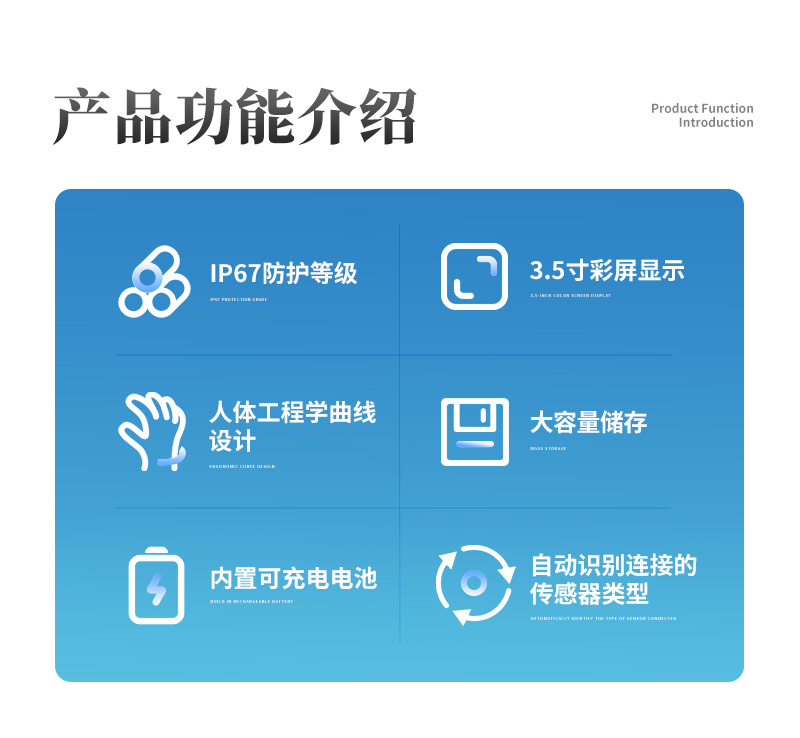 ? 自動識別連接的傳感器類型,讀數(shù)界面自動適應(yīng);