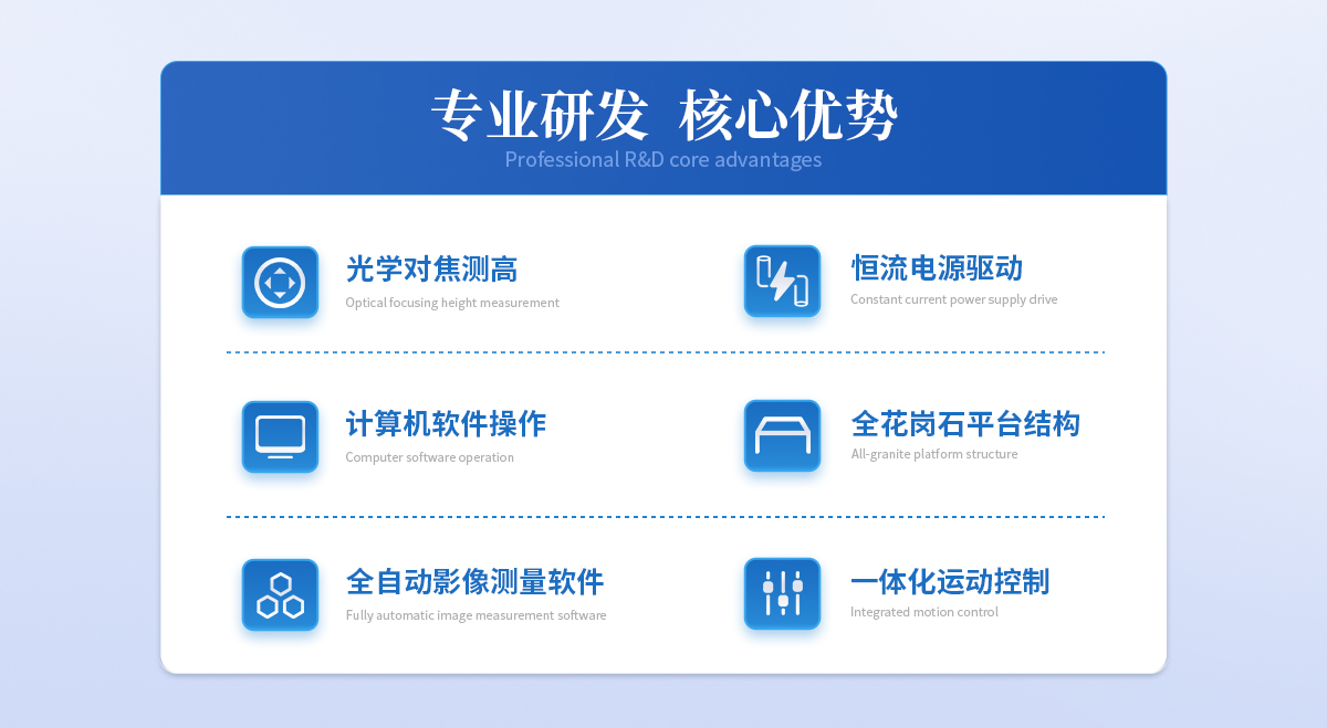 | ? 三軸均采用臺灣LEPIN高精度直線導(dǎo)軌、精密級無牙螺桿傳動(dòng),噪音低振動(dòng)小,動(dòng)態(tài)幾何誤差變形*小。 | ? 采用優(yōu)質(zhì)花崗巖大理石底座、立柱、工作臺,具有良好的溫度穩(wěn)定性、抗實(shí)效變形能力 。 | ? 有限元結(jié)構(gòu)分析及優(yōu)化結(jié)構(gòu)設(shè)計(jì)為該系列保證了系統(tǒng)整體的高精度及高穩(wěn)定性。 | ? 采用集成式多功能控制器,整體機(jī)臺故障率低,售后更方便 。 | ? 配備紅點(diǎn)激光定位裝置,方便快捷找準(zhǔn)測量位置 。 |