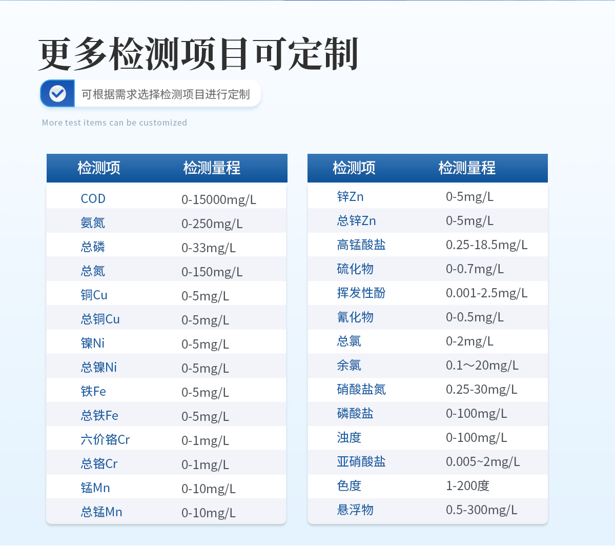 | 1、采用全新安卓7.1.1智能操作系統(tǒng),人性化中文操作界面,運(yùn)轉(zhuǎn)速度更快速,穩(wěn)定性更強(qiáng)。 | 2、10.1英寸液晶觸摸屏顯示,人性化中文操作界面,讀數(shù)直觀、簡單。 | 3、采用精密比色池設(shè)計(jì),使用光源一致,可以解決由于光源誤差帶來的檢測結(jié)果誤差問題,檢測結(jié)果更加精準(zhǔn)。 | 4、光源采用進(jìn)口超高亮發(fā)光二極管,光源亮度可以自動調(diào)節(jié)與校準(zhǔn)。 | 5、支持10mm、30mm、40mm、50mm皿比色和φ16mm管比色等比色方式,多元選擇,確保測量的準(zhǔn)確性; | 6、具有無線通訊功能,支持WIFI、RJ45、手機(jī)熱點(diǎn)聯(lián)網(wǎng)傳輸,檢測數(shù)據(jù)亦可通過U盤導(dǎo)出; | 7、多功能樣品管理,可對樣品進(jìn)行中英文命名,方便樣品記錄和數(shù)據(jù)存儲; | 8、儀器可永久存儲800萬組數(shù)據(jù),為方便大量數(shù)據(jù)查找,可通過時間檢索,并隨意選擇分析; | 9、支持HDMI輸出,方便用戶培訓(xùn)、講解、及大屏展示。 | 10、儀器帶有監(jiān)管云平臺,數(shù)據(jù)可通過局域網(wǎng)和互聯(lián)網(wǎng)上傳,亦可對接上傳至環(huán)境監(jiān)管部門平臺。 | 11、內(nèi)置熱敏行式打印機(jī),打印紙上的內(nèi)容可自由選擇(包括二維碼打印); | 12、交流220V,可選配6ah大容量充電鋰電池,方便戶外流動測試; | 13、內(nèi)置教學(xué)演示視頻,用戶可一邊看儀器內(nèi)操作視頻,一邊進(jìn)行實(shí)驗(yàn)操作,更易上手。 | 14、后期產(chǎn)品固件可升級。 |
