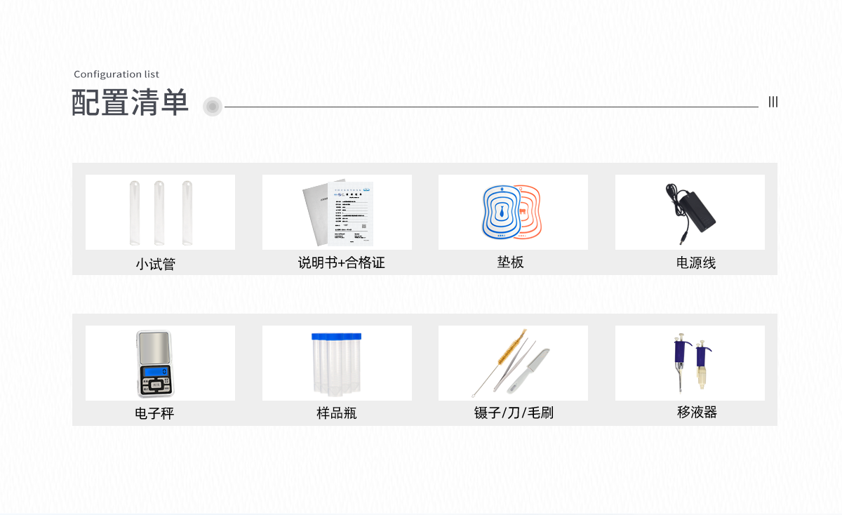 | 瘦肉精激素類(獸藥):鹽酸克倫特羅、沙丁胺醇、萊克多巴胺、己烯雌酚、喹乙醇等 | 抗生素殘留類(獸藥):四環(huán)素類、硝基呋喃類、磺胺類、沙星類、喹諾酮類、慶大霉素、鏈霉素、阿莫西林、紅霉素等 | 水產(chǎn)品安全類:孔雀石綠、氯霉素、呋喃妥因代謝、呋喃西林代謝、呋喃它酮代謝、呋喃唑酮代謝等 | 以及病害肉及肉類新鮮度的擴展檢測。 |