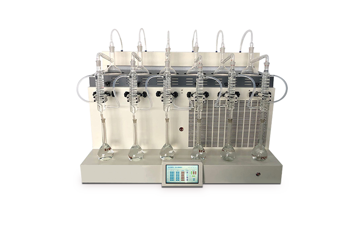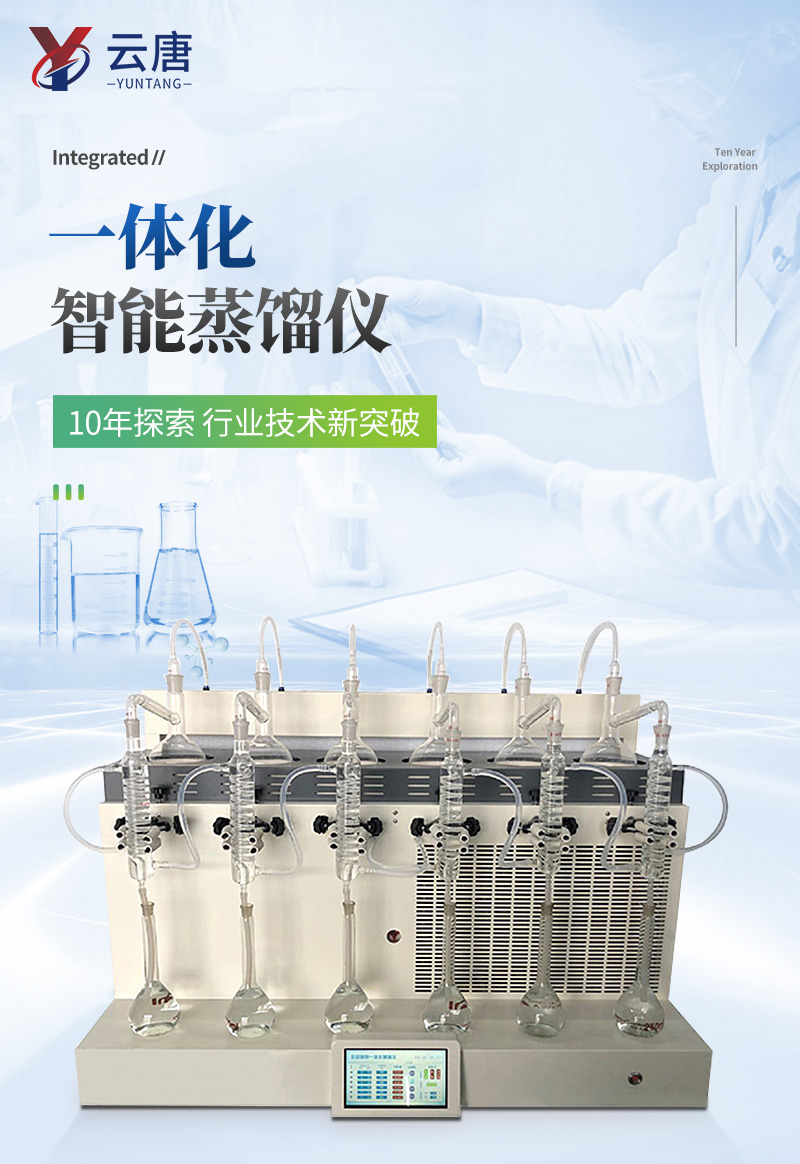 YT-**6智能一體化蒸餾儀是根據(jù)實(shí)驗(yàn)室蒸餾預(yù)處理操作規(guī)程,集恒溫加熱、蒸餾終點(diǎn)自動(dòng)控制、冷卻水循環(huán)于一體的新型智能蒸餾處理裝置。